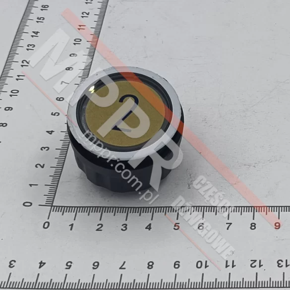 32SHR323352 Complete round push-button D2 / SCH300 for a car operating panel. Engraved symbol „2”, without Braille.