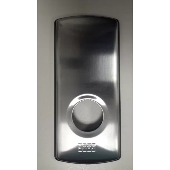 Stainless steel rectangular base for a landing call station, one round hole for a push-button.