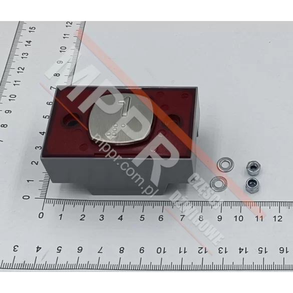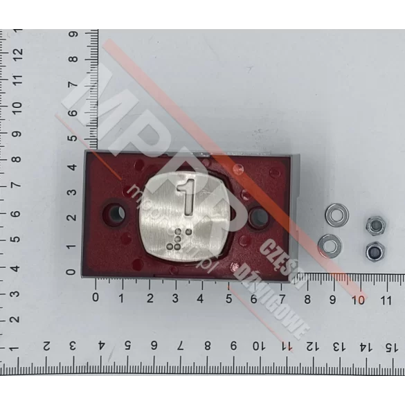 2172PDBCR124(1) Przycisk kwadratowy, symbol „1”, Mac Puarsa, czerwone podświetlenie, 1 kontakt, 24 V DC. Ze znakiem Braille'a.