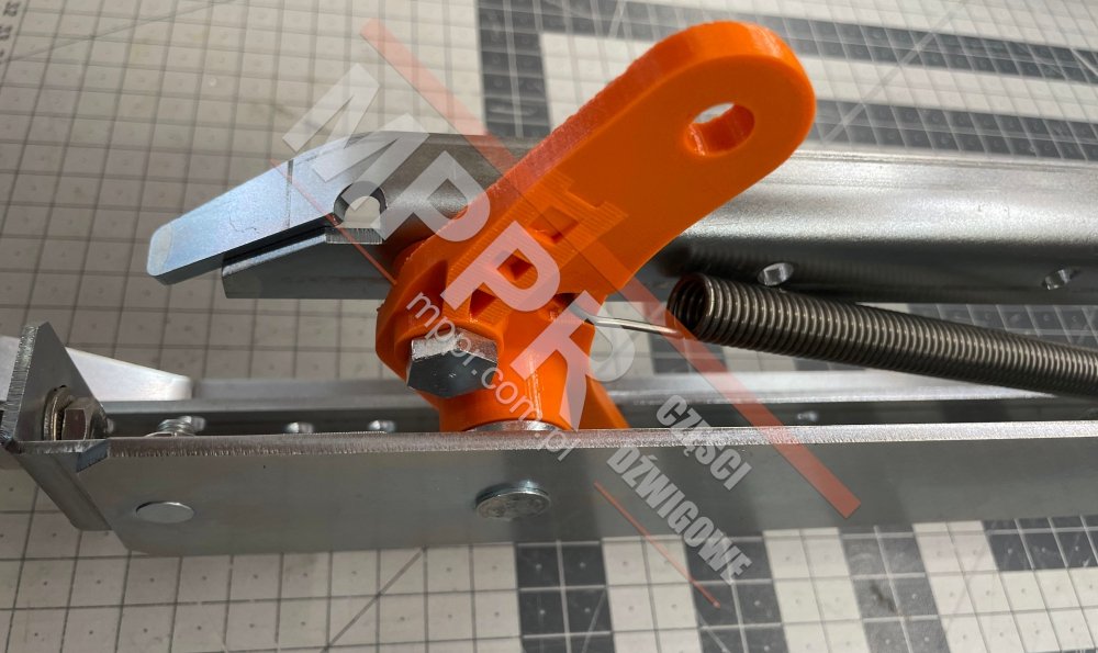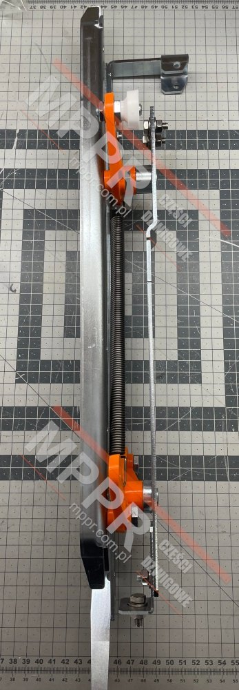 Krzywka lewa napędu drzwi kabinowych HKE2100 Varidor 10, do dźwigu MRL Smart, z drukowanymi 3D elementami MPPR (pomarańczowymi na zdjęciach). Drukowane 3D elementy MPPR można kupować oddzielnie.