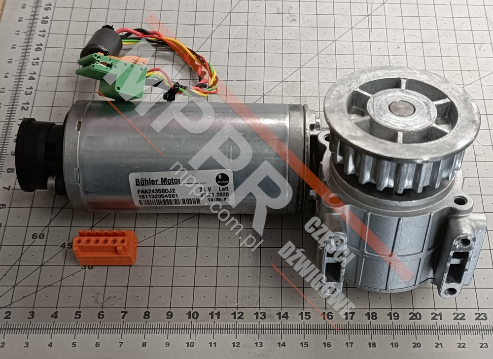 Zestaw: silnik napędu AT120 drzwi kabinowych, lewy, ze złączem gniazdowym (FAA176HF6). Złącze 6-stykowe