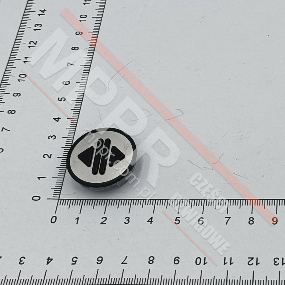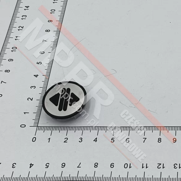 KM801054G083 Szyld przycisku okrągłego otwierania drzwi zewn., KSS, szary i czarny. Wypukły znak „otwieranie”, bez znaków Braille'a.