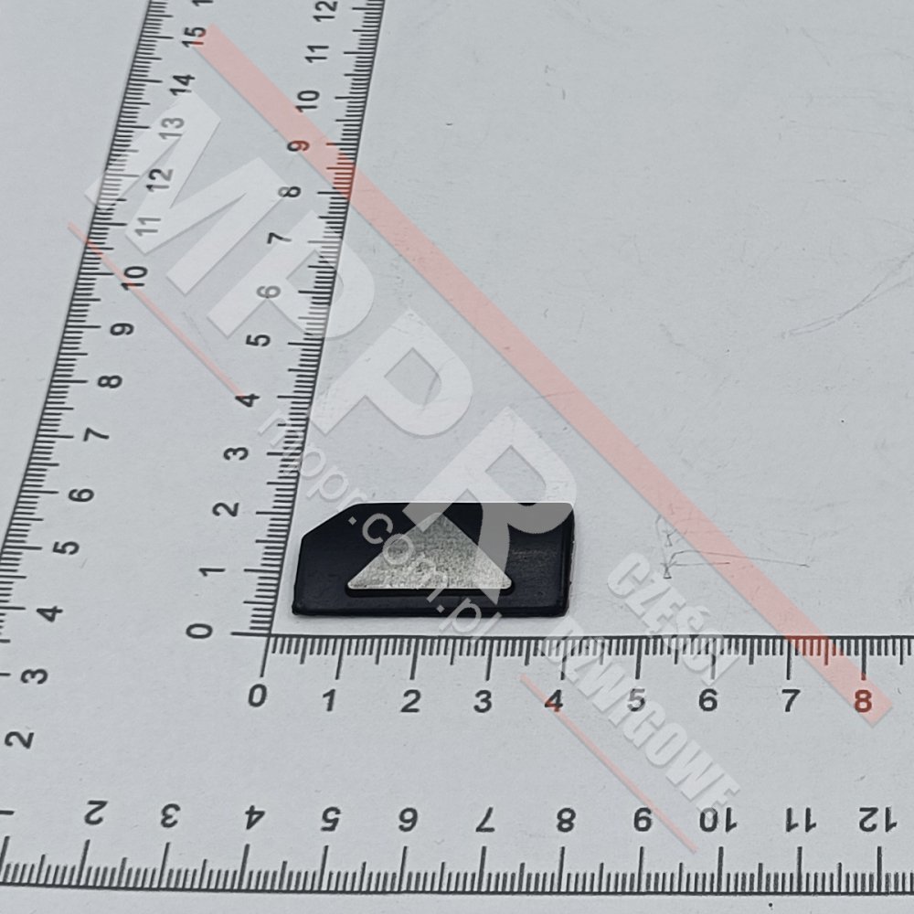Szyld przycisku, wypukły, prostokątny ze ściętym lewym górnym rogiem, kolor czarny, wypukła strzałka w górę