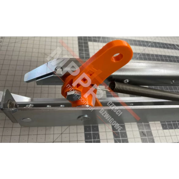 Krzywka lewa napędu drzwi kabinowych HKE2100 Varidor 10, do dźwigu MRL Smart, z drukowanymi 3D elementami MPPR (pomarańczowymi na zdjęciach). Drukowane 3D elementy MPPR można kupować oddzielnie.